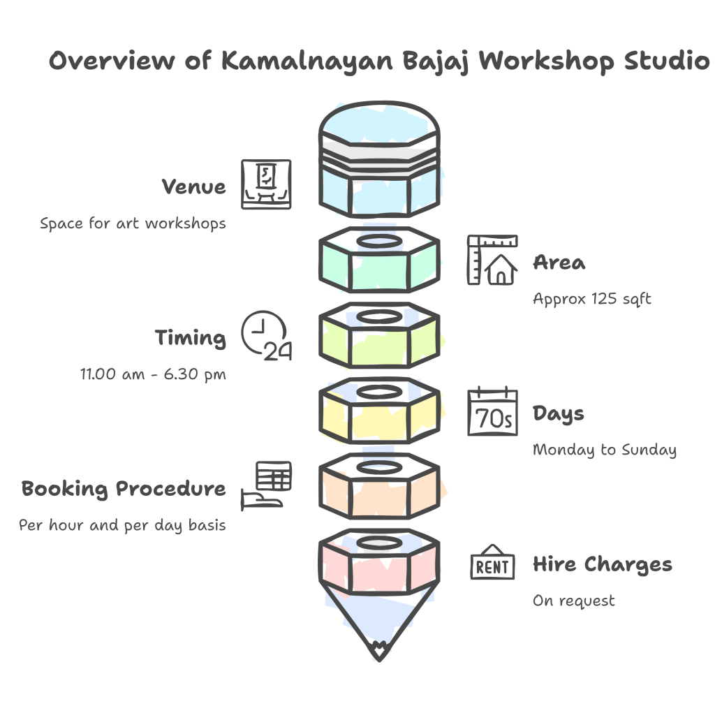 Our Workshop Studio provides a dedicated and well-equipped space for artists to conduct workshops that leads to fostering an environment where artistic visions come to life.